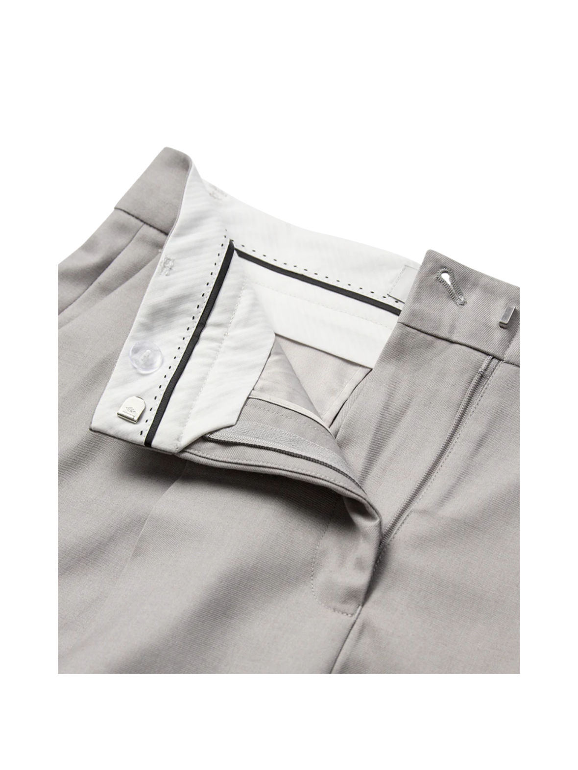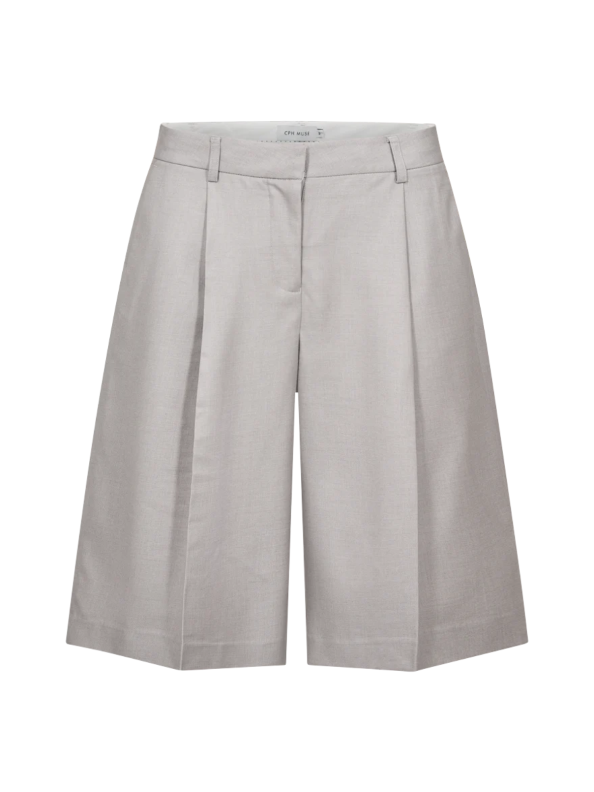 Elegante bermudashorts i en lys grå nuance med et sofistikeret og moderne udtryk. De fine læg foran giver struktur og et velklædt look, samtidig med at pasformen føles komfortabel. Style dem med en skjorte eller blazer for et chic sæt, eller med en enkel top til hverdagen. Et stilfuldt alternativ til klassiske shorts med et eksklusivt touch.