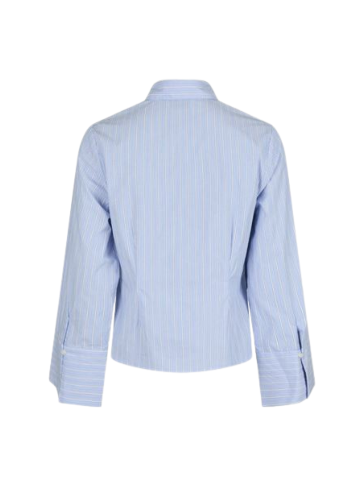 Klassisk skjorte i en frisk lyseblå nuance med fine striber, der giver et elegant og stilrent udtryk. Den figursyede pasform fremhæver silhuetten, mens de brede manchetter tilfører et moderne twist. Perfekt til både arbejde og pæne hverdagslooks. En tidløs skjorte, der kombinerer klassisk stil med et nutidigt snit.