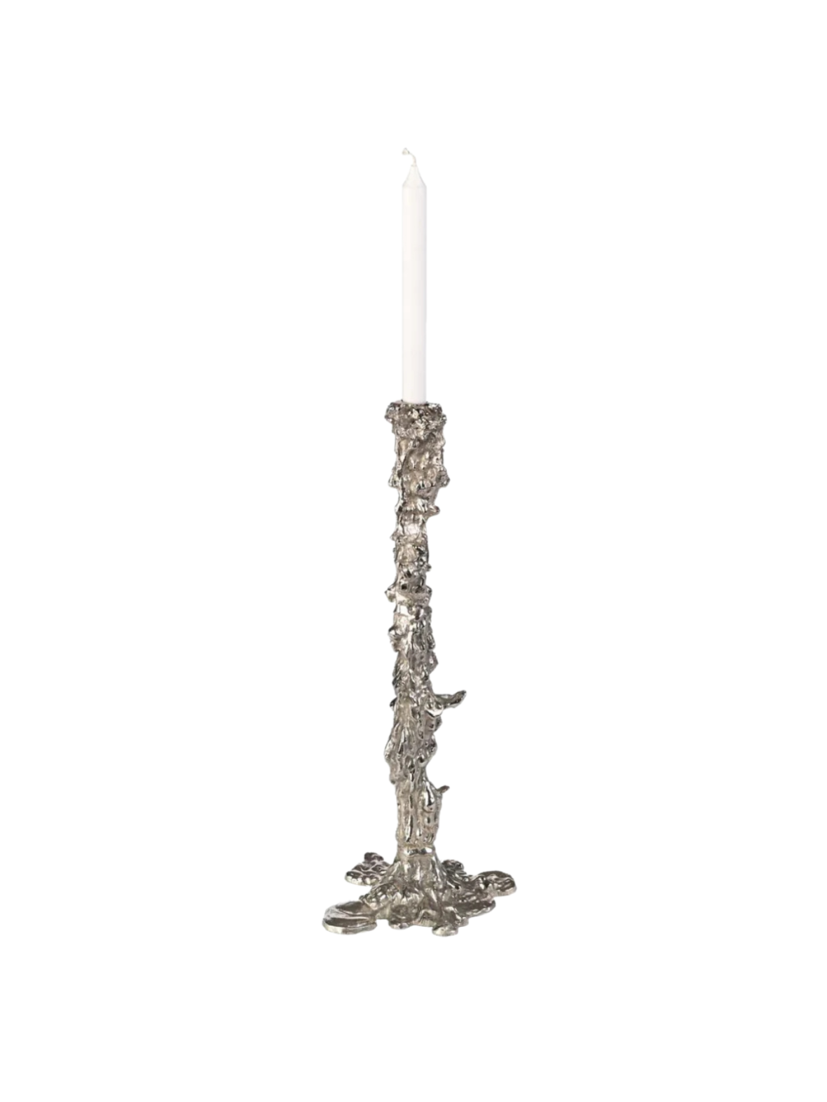 Skulpturel lysestage i et råt og organisk design, der tilfører et kunstnerisk udtryk til indretningen. Den unikke form og blanke finish gør den til et iøjnefaldende element på bordet eller i vindueskarmen. Perfekt til at skabe en hyggelig og stilfuld stemning med levende lys. En dekorativ detalje, der kombinerer funktion og æstetik.